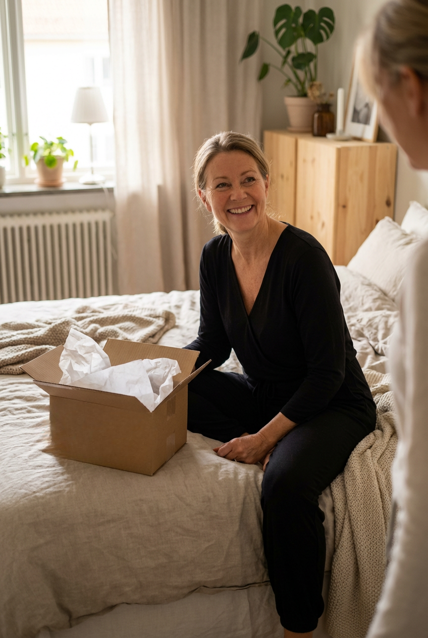 Du har 30 dager til å prøve kjøpet hjemme i fred og ro. Kjenn hvordan det sitter, hvordan det faller og hvordan det føles i hverdagen. Hvis noe ikke føles helt riktig, returnerer du det enkelt innen denne perioden. Slik kan du handle med ro i magen.